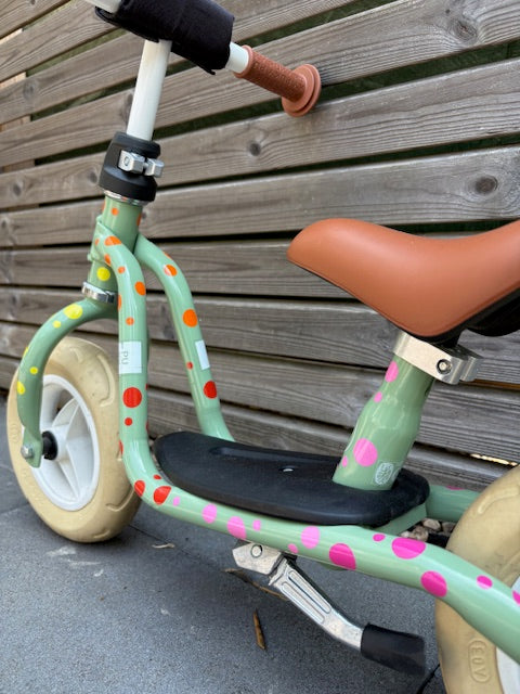 Dancing dots, cheerful colors – here comes a confetti shower for your bike. The "Confetti Kisses" design features colorful dots in three different sizes. With this sticker set, you can customize your bike and turn it into a magical ride.