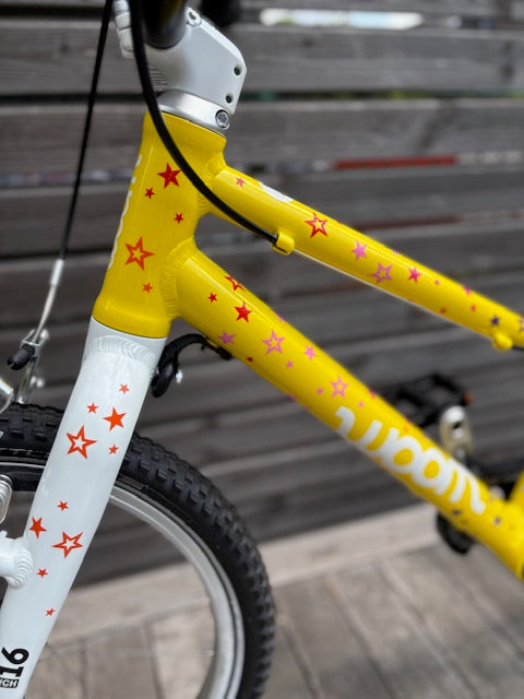Das Design "Funkelzauber" enthält bunte & reflektierende Sterne in drei verschiedenen Größen. Mit diesem Sticker-Set kannst Du Dein Fahrrad ganz individuell gestalten. So wird es zu einem magischen Gefährt, das Dich sicher durch Straßenverkehr führt.